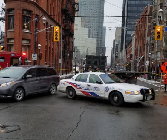 Paramedics and police were called to Church Street and Front Street East after 12:30 p.m. with reports of a collision.