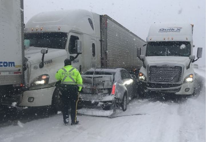 Conditions on parts of the highway were treacherous with heavy snow and limited visibility.