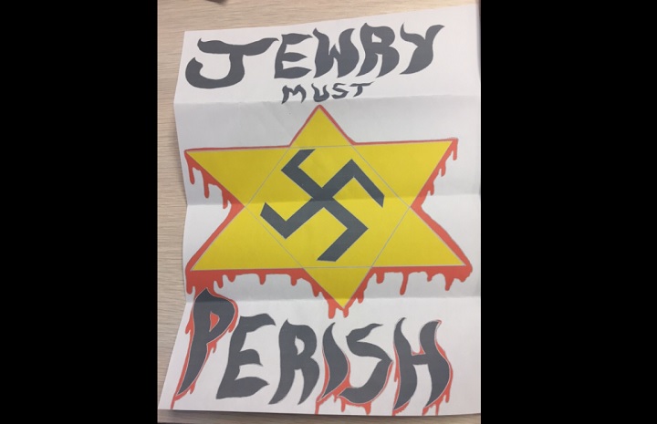 The letter contained the phrase “Jewry Must Perish” with a bleeding Star of David and a swastika at the centre.