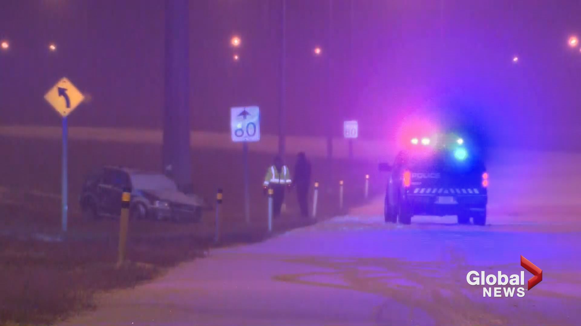 Calgary police also responded to a vehicle that crashed into a pole on the Stoney Trail ramp heading eastbound towards Highway 22X.