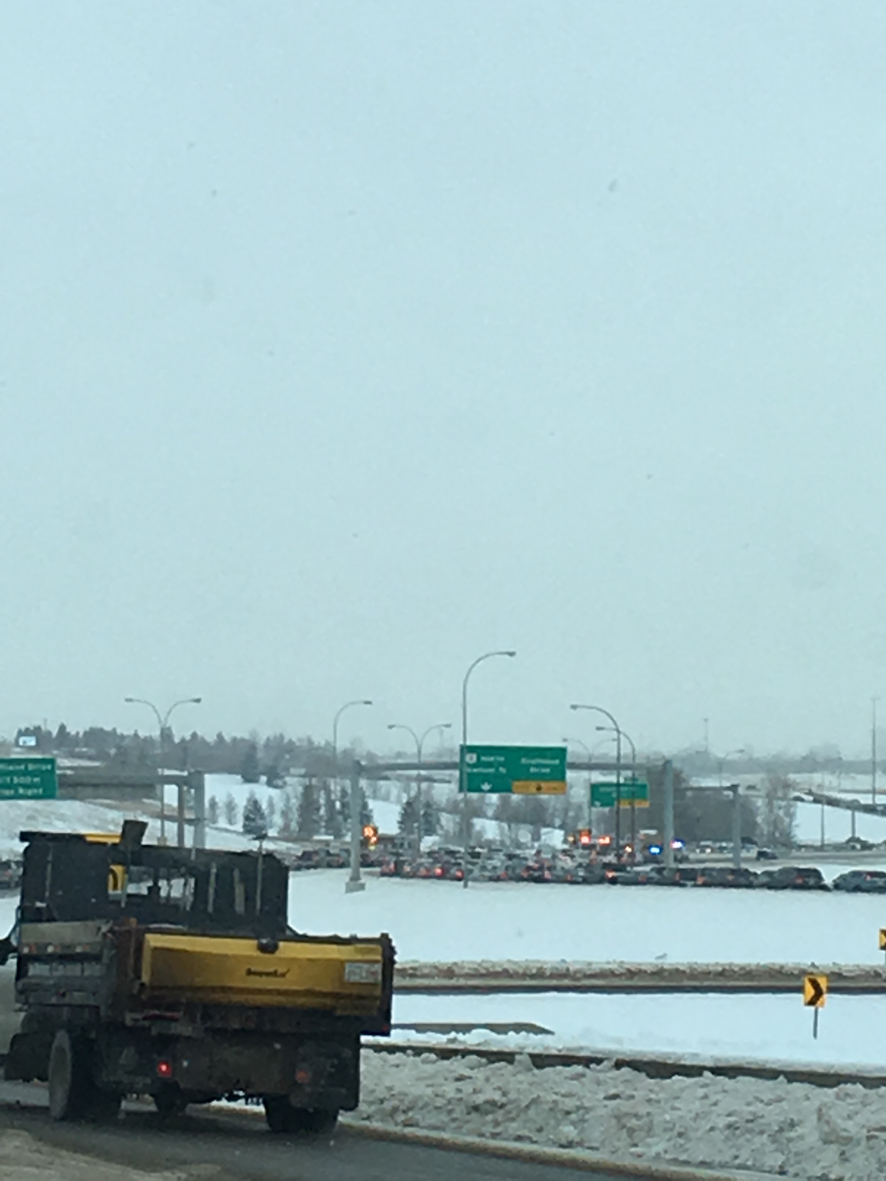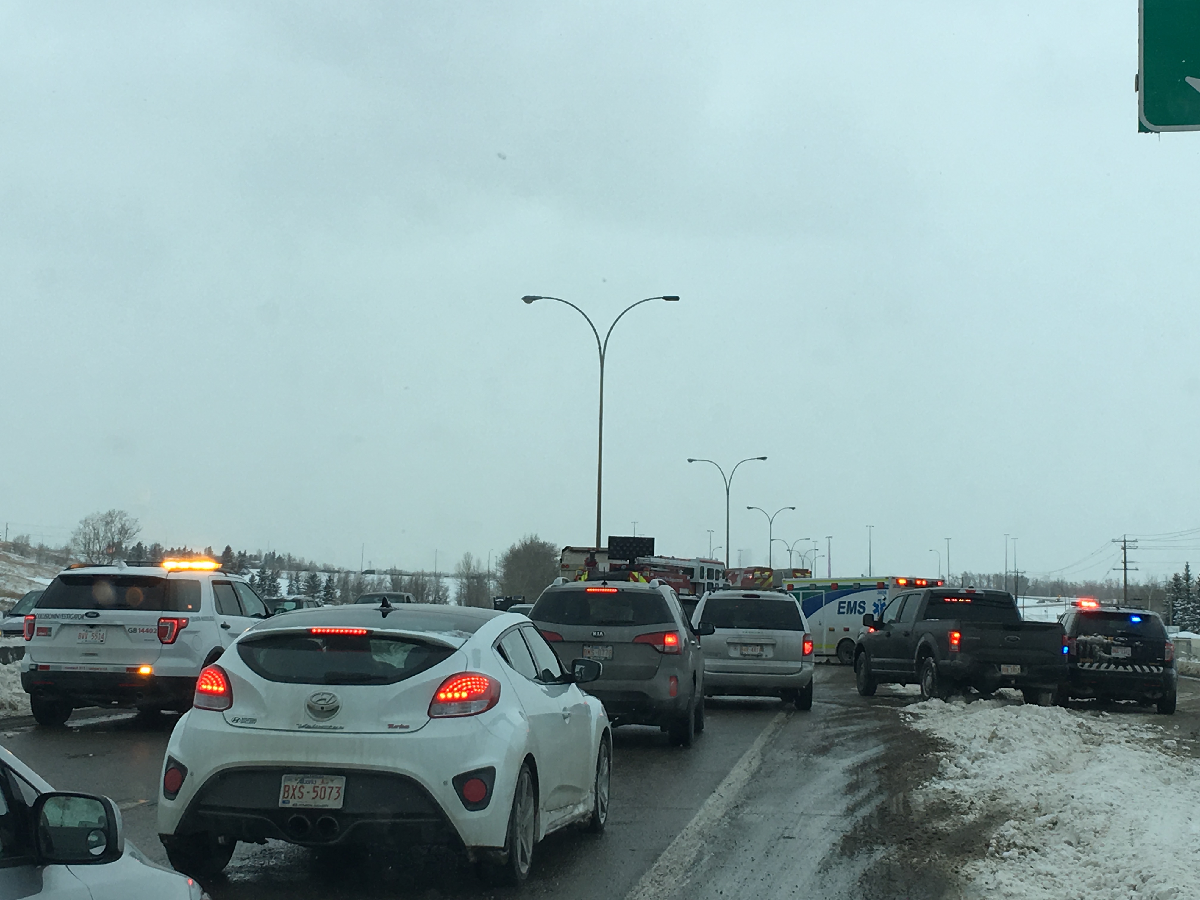 Northbound Deerfoot Trail at Anderson Road was closed, except for one lane, as of 2 p.m.
