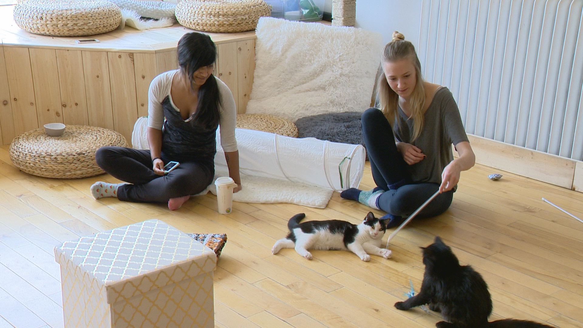 “You’re more than welcome to bring your coffee, your drinks, your food and hang out with the cats in here,” she said.