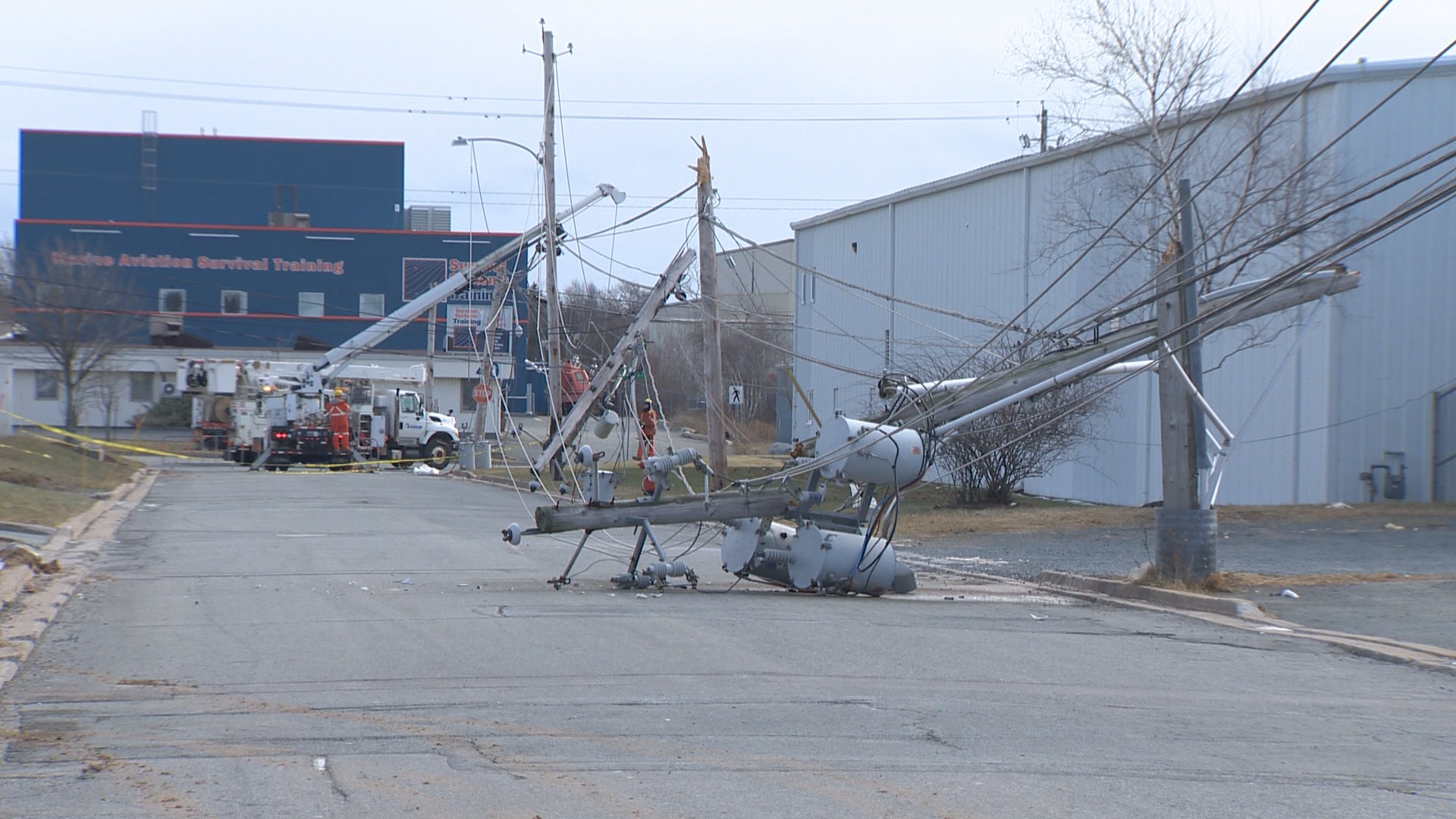 “Several times last night when the winds hit around the 90- to 100-kilometre-an-hour mark around Metro and other parts of the province, we actually had to stand our crews down in the booms so they weren’t up in the air in the peak gusts,” said Scott Cherry, transmission and distribution supervisor with Nova Scotia Power.
