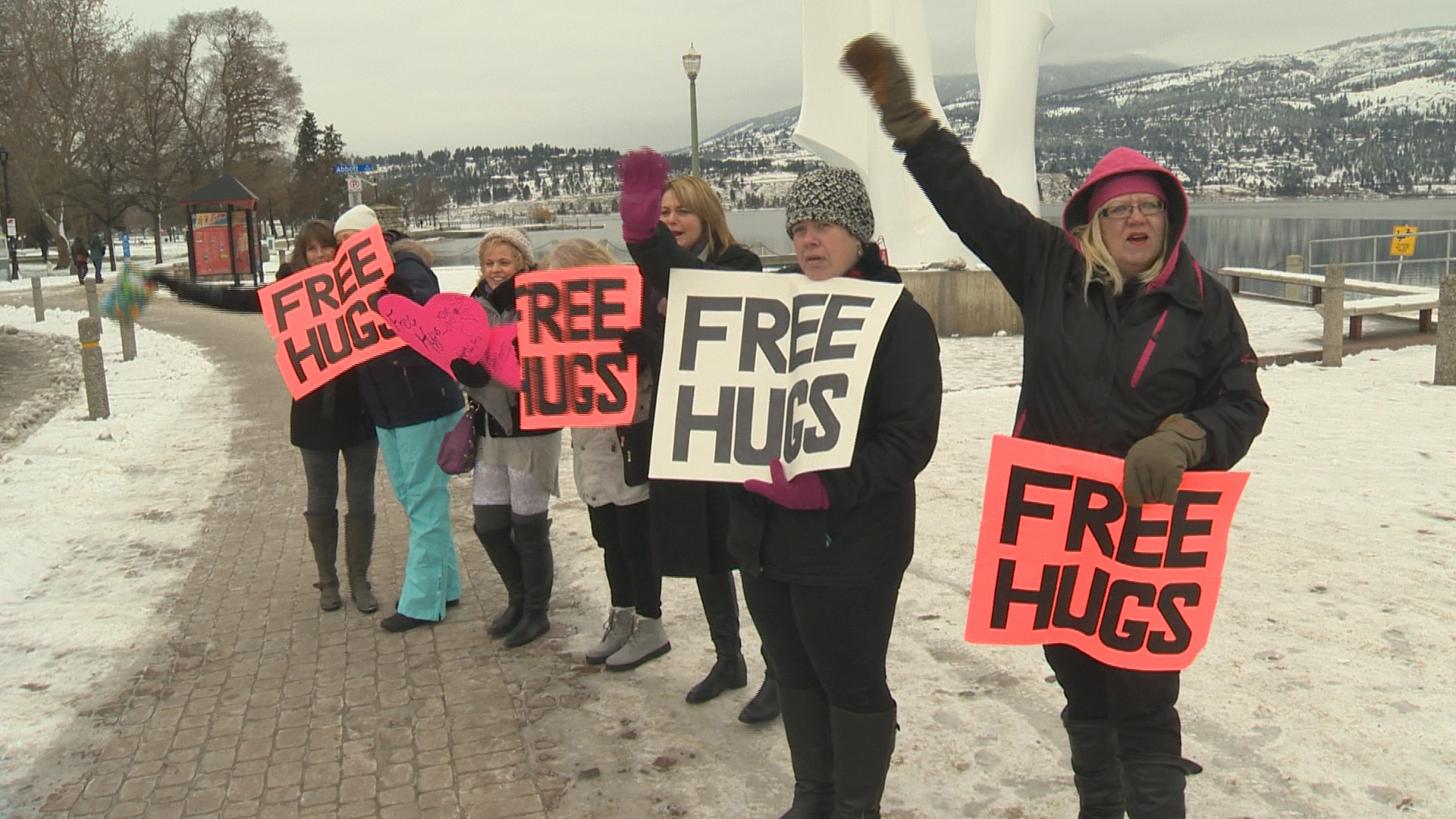 A group of about a dozen people handed out free hugs in Kelowna in what’s becoming an annual Boxing Day tradition.