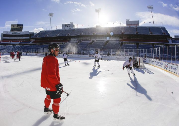 The Bills stadium was the site of the NHL’s first Winter Classic in 2008, when the Buffalo Sabres played Pittsburgh with a light snow falling and a game-time temperature of 0.5 C.