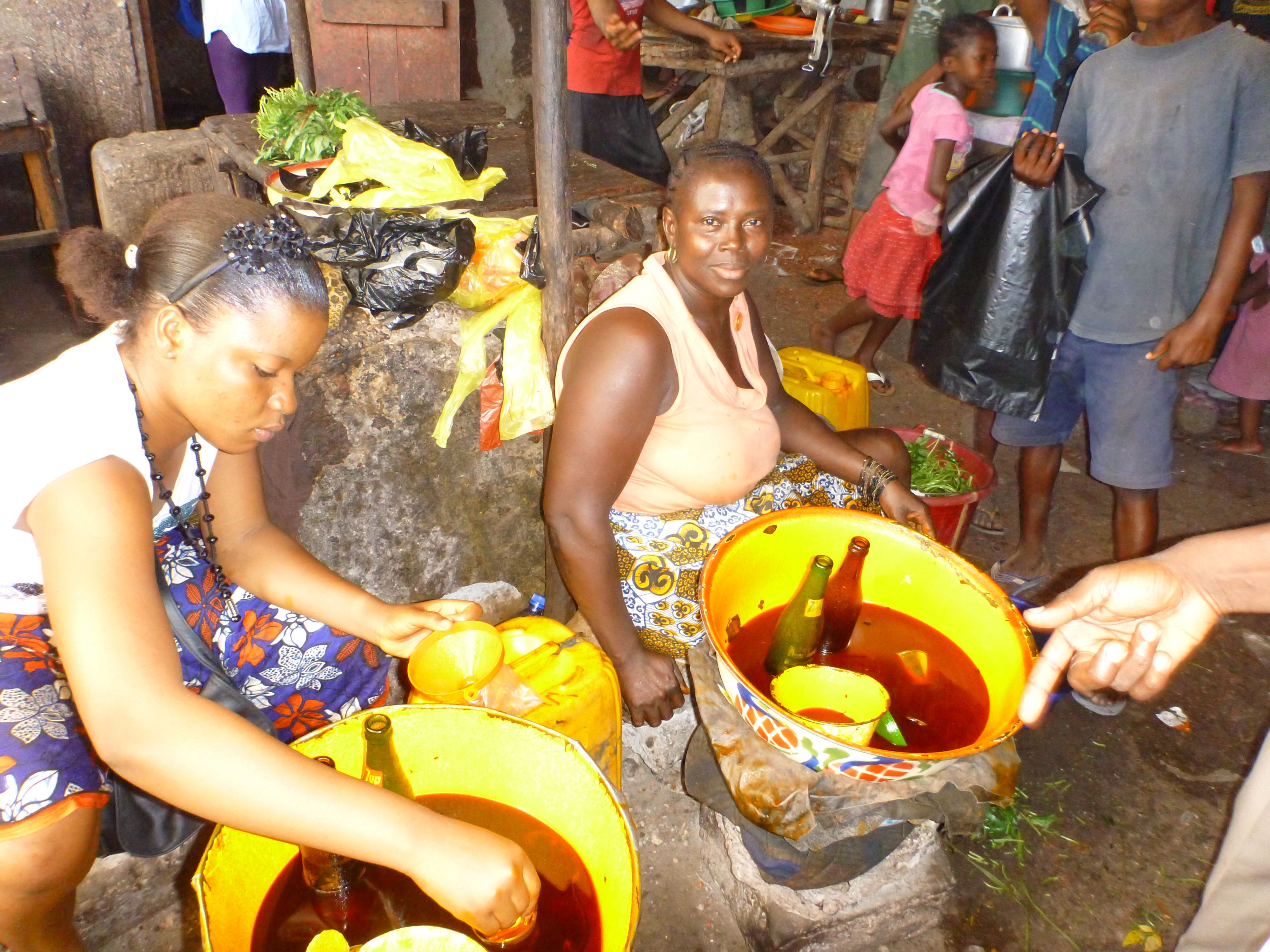 “The prices have gone up so much, we can’t afford it. Palm oil is produced right here in our country it now costs about Le 4000 per litre, about one dollar…we need it to cook our food in but that is my entire days pay and I haven’t even bought the fish yet.”