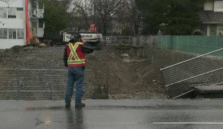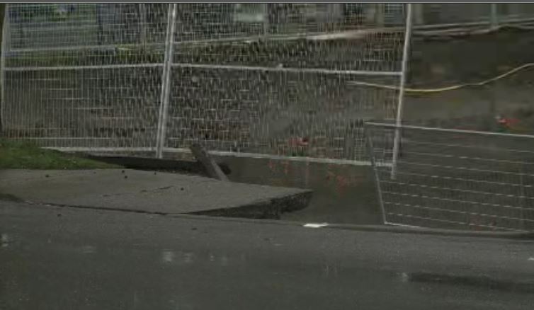 Dellebuur said about 30 metres of sidewalk on the north side of the street collapsed inward, falling about two-and-a-half feet into the pit below.