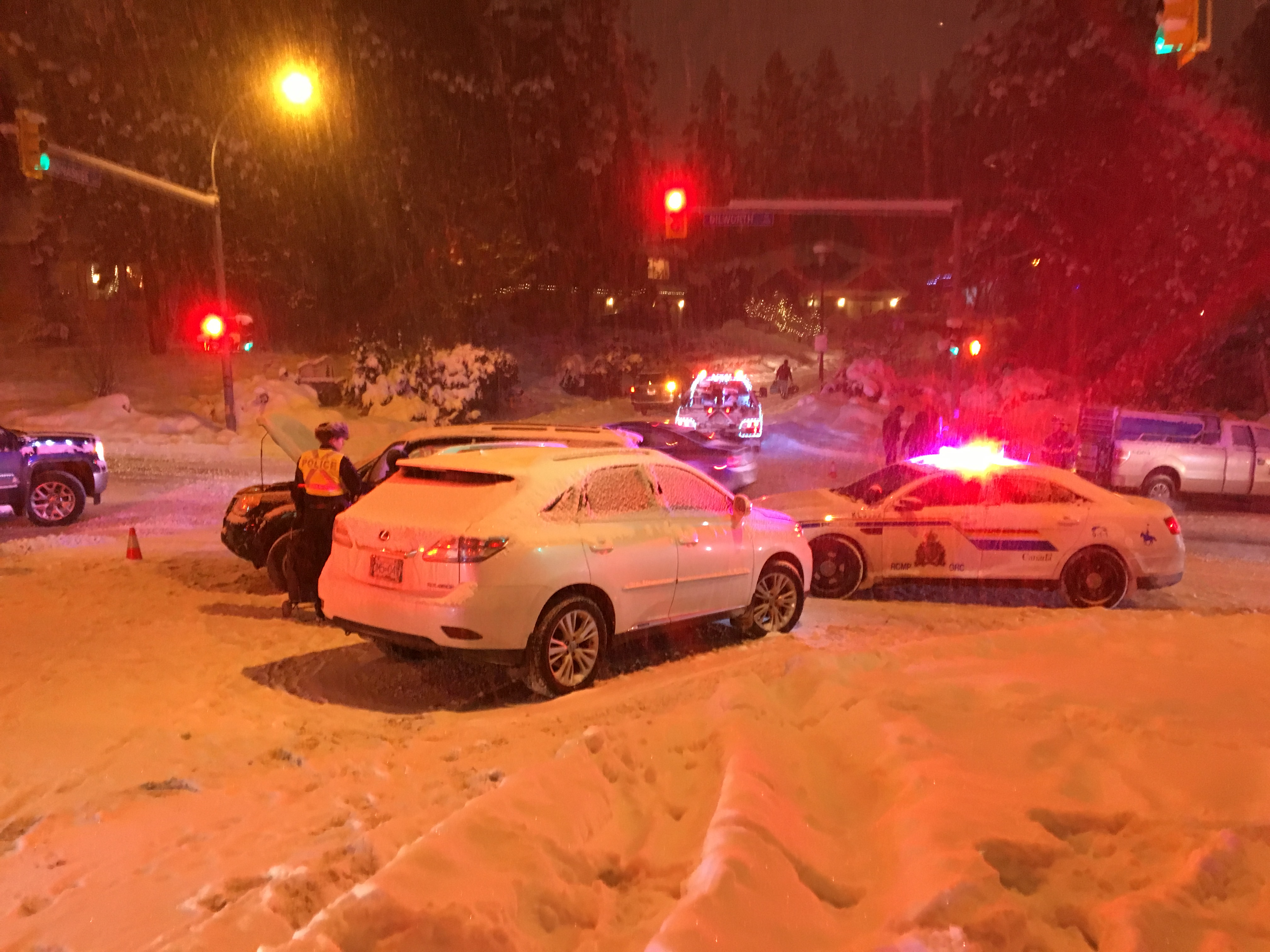 A truck may have slid into the intersection from Summit Drive, according to RCMP, who continue to investigate.