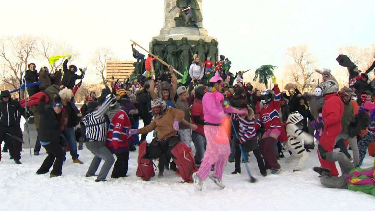 MONTREAL – A group of intrepid Montrealers met at the foot of Mont Royal on Sunday afternoon to contribute to the latest meme that’s shaking the internet.