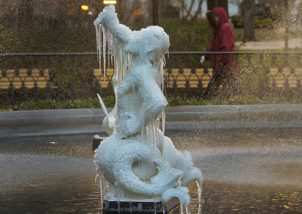 In Savannah, Georgia – where January’s average high is 60 degrees (16 Celsius) – the temperature hovered at 30 (-1 Celsius) at noon Tuesday. It was cold enough for icicles to dangle from the ornate wrought-iron fountain in Forsyth Park at the edge of the city’s downtown historic district.