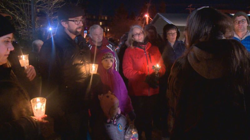 Over one hundred people attended a candlelight vigil on Wednesday for a baby found dead in the community of Bowness on Christmas Eve.