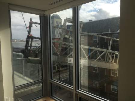 “When I got up to look at it, the scaffolding had completely detached from the side of the building,” he said. “At the time when I saw it coming into the window, I thought it was going to crash through the window.”