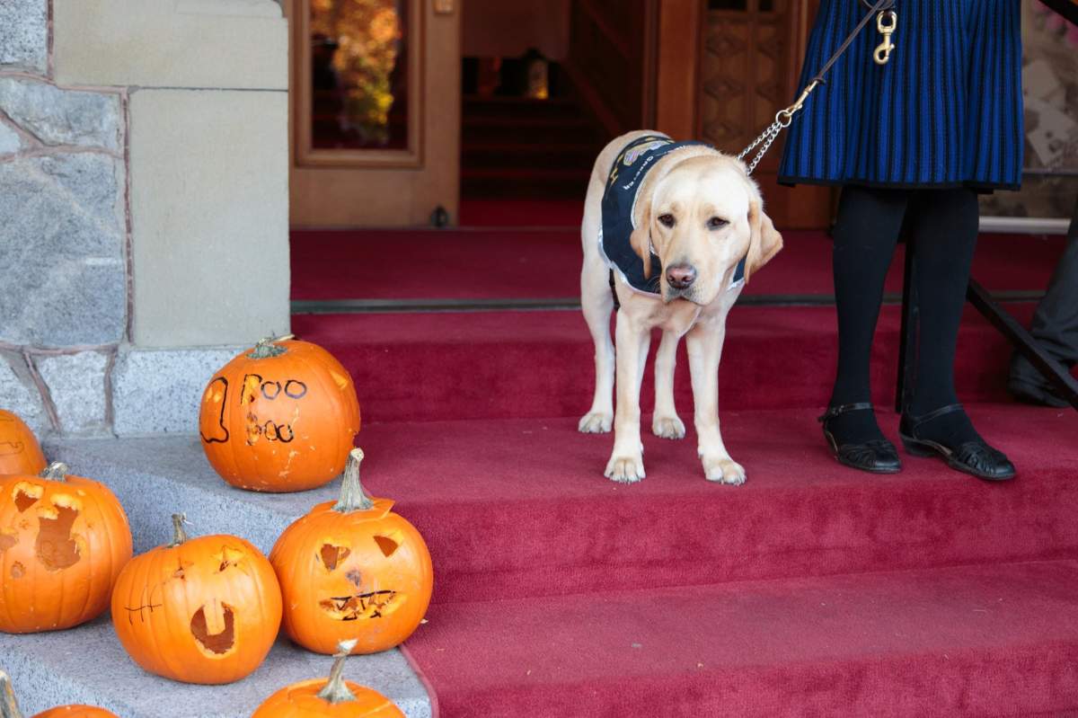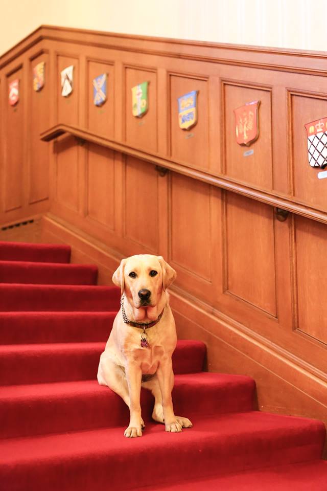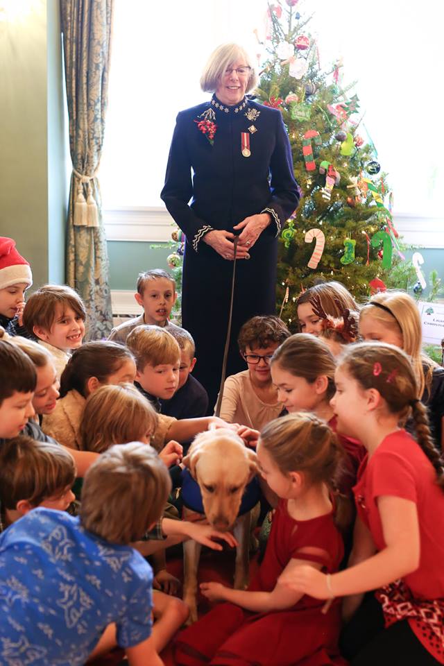 Olive’s role as Government House Vice Regal Greeter is ceremonial. She accompanies the Lieutenant Governor to public events and wears a specially made blue Vice Regal coat while performing her duties. For a guide dog dropout, it’s the perfect gig. Olive spends her days breaking the ice with guests and is most comfortable around children.