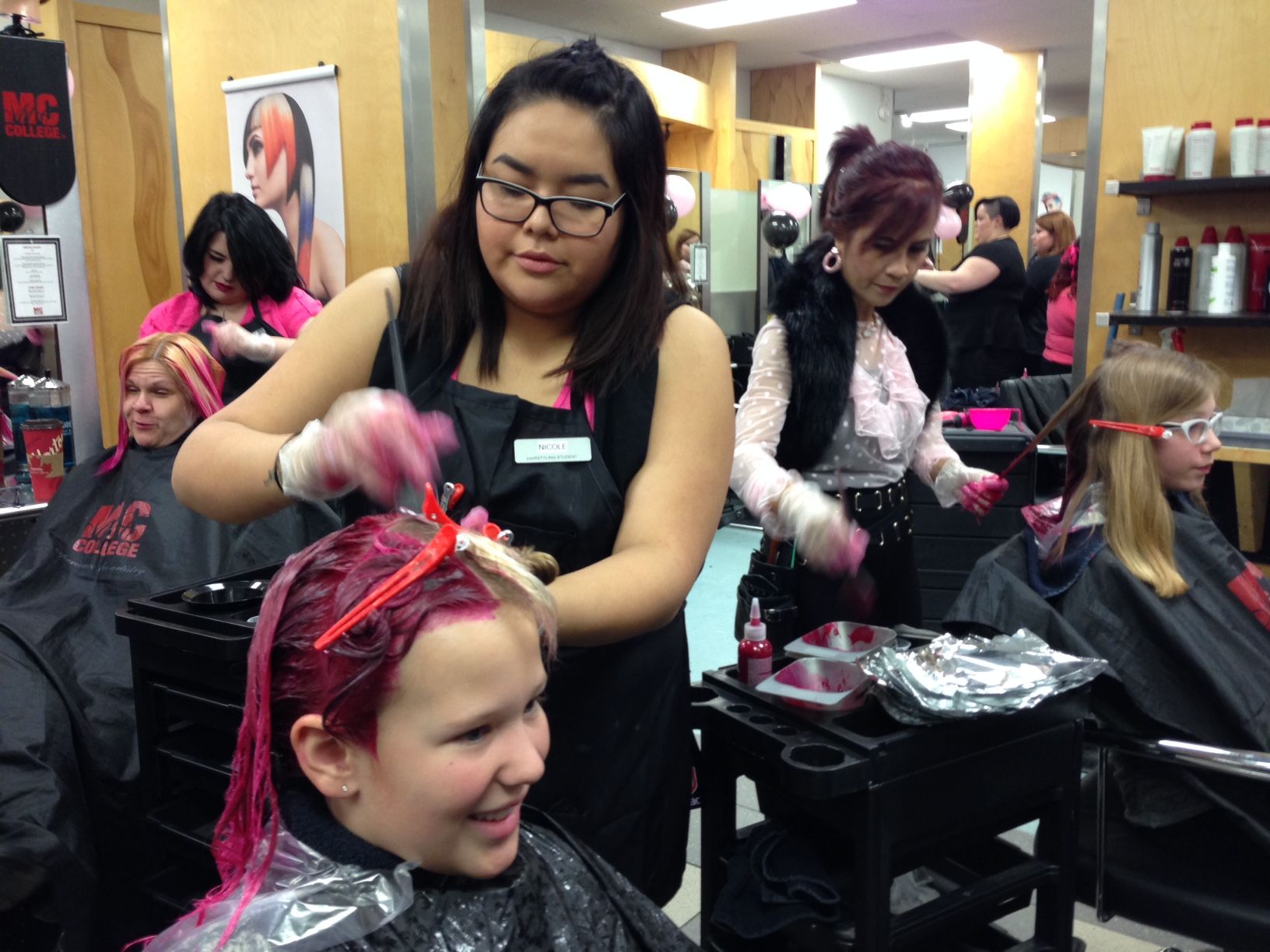 Macdonald started Hair Massacure in 2003 as a way for her family to give back after her youngest child, Kali, survived leukemia at age two. The event encourages people to dye their hair pink, fundraise for the participating charities, then shave off their hair in a massive head-shaving event.