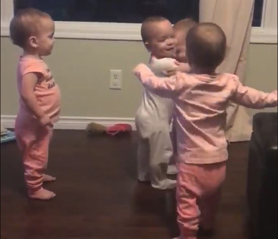 On New Year’s Day, the family posted an adorable video on the Webb Quadruplets Facebook page, showing them toddling around, wrapping their arms around each other and trying to say the word “hug!”
