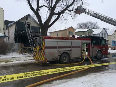 One person was taken to hospital early Sunday morning after a rooming house in Winnipeg went up in flames.
