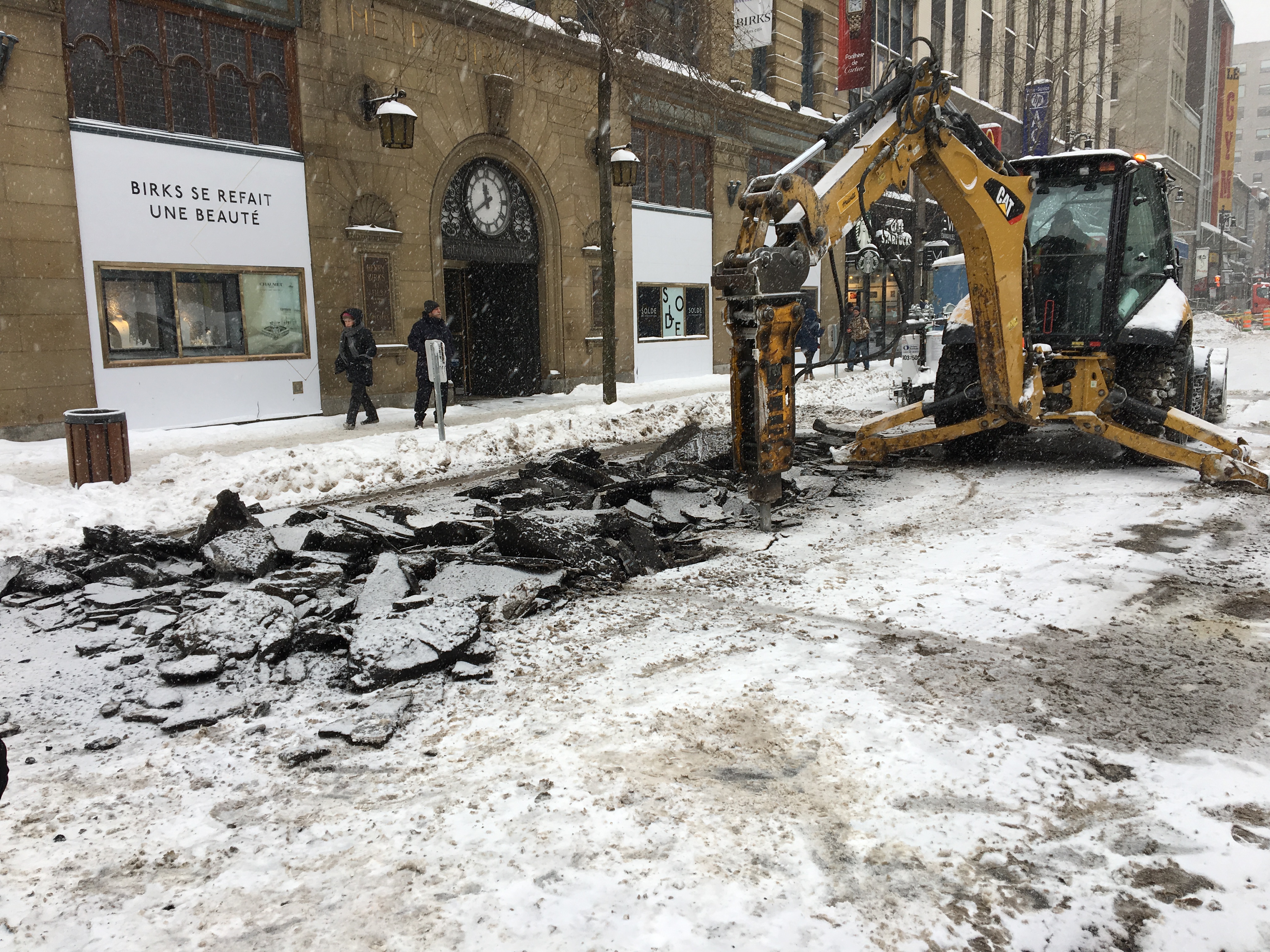 The most famed shopping street in downtown Montreal is being reduced to rubble.