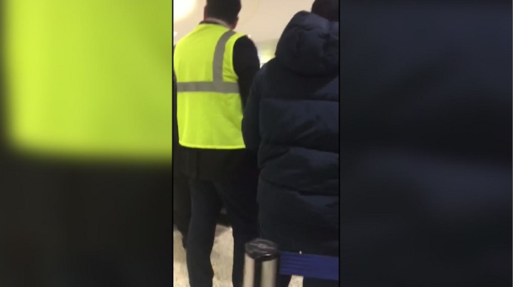 The videos appear to show a Porter representative explaining that recording video in the airport is a violation of security rules, which is not true.