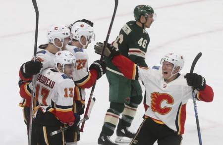 Dougie Hamilton scored 2:39 into overtime to lift the Calgary Flames over the Minnesota Wild 3-2 on Tuesday night.