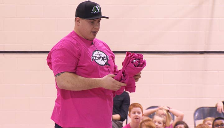 The 2018 Pink Day shirt was revealed on Tuesday at schools in both Regina and Saskatoon.