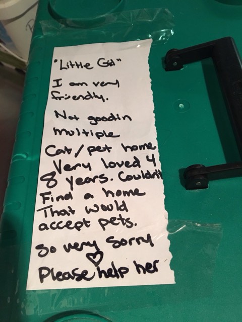 Last October, this cat ‘Little Girl‘ was left outside with a note saying the owner was sorry but they couldn’t find a home that would accept pets.