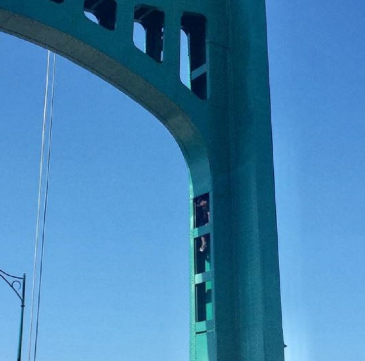 A motorist called 911 when they saw a man with a backpack and headlamp climb over one of the bridge’s railings and start ascending the guy wires.