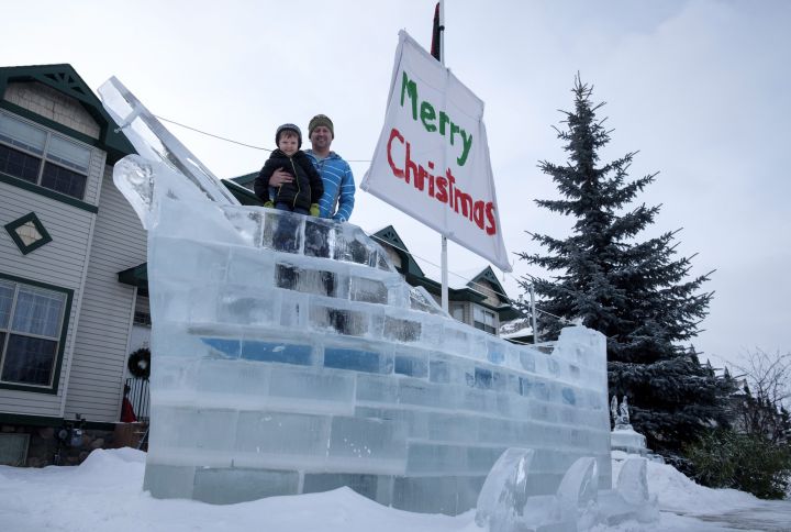 White works in the oil sector and said he has some downtime in the winter so for the past few years, he’s built his children an ice sculpture to enjoy in front of their Red Deer home.