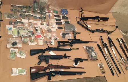 Over half a kilogram of cocaine was seized, along with methamphetamine, marijuana, marijuana edibles, psilocybin mushrooms, a number of unknown pills, two firearms, various replica firearms and weapons and $2,480 cash.