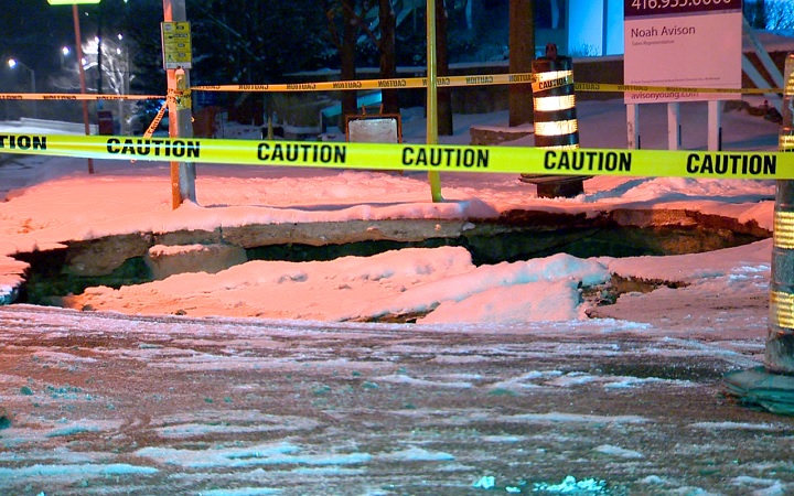 Sporadic temperatures in Southern Ontario caused a watermain to burst that led to a massive sinkhole on Yonge St. and York Mills last week.