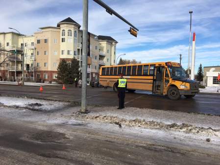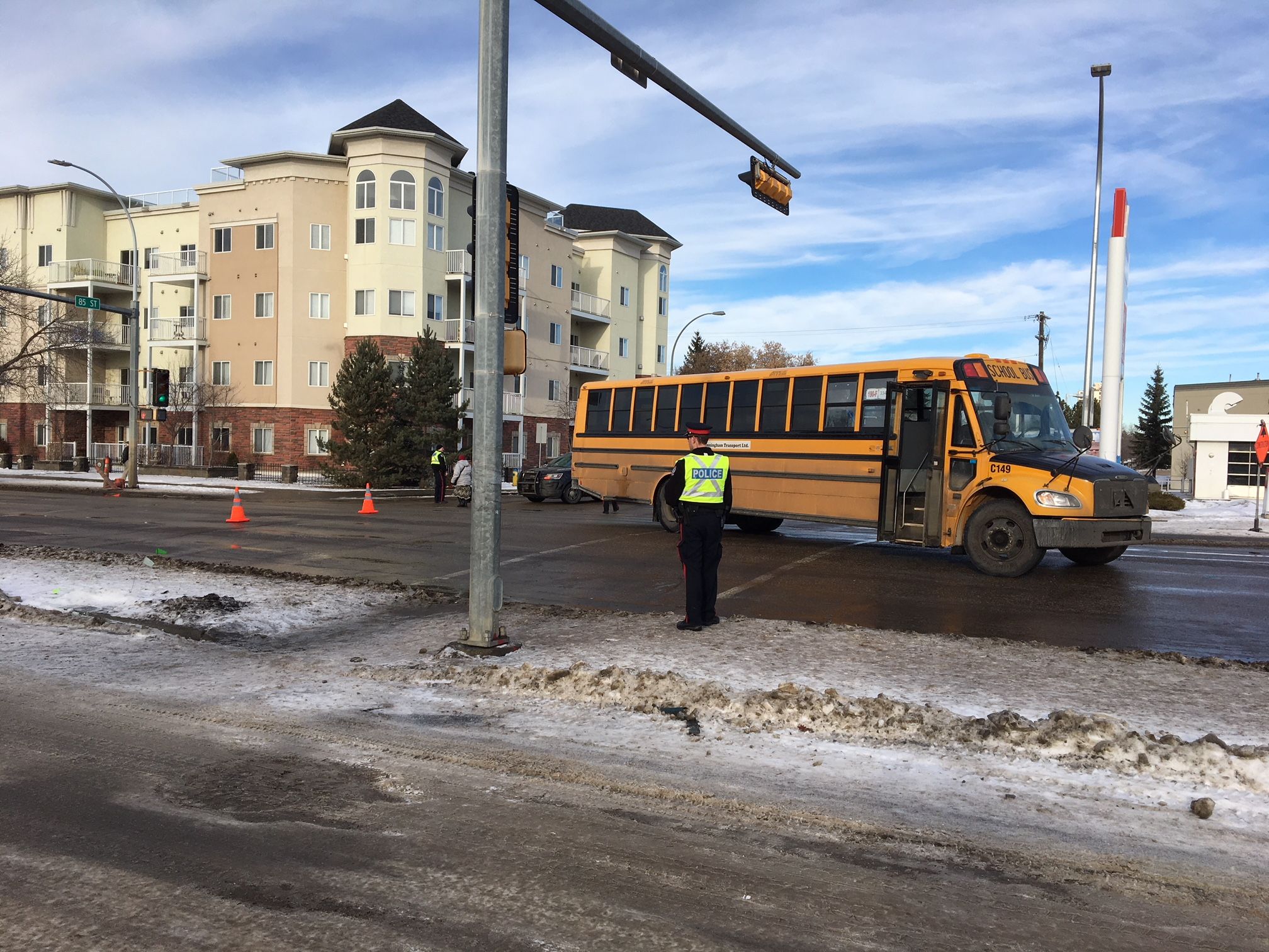 In a news release, police said they responded to the intersection of 82 Avenue and 85 Street at 11 a.m. after it was reported a school bus collided with the woman.