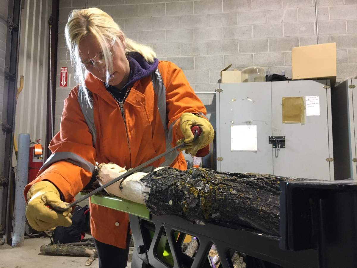 Identifying trees infected by ash borers is a skill the foresters need to pick up immediately. Dr. Krista Ryall, Forest Ecological Entomologist with Natural Resources Canada, led the training, which involved peeling back bark and looking for signs of larvae.