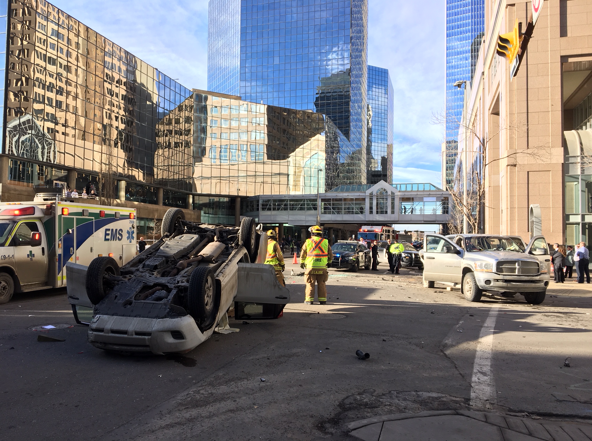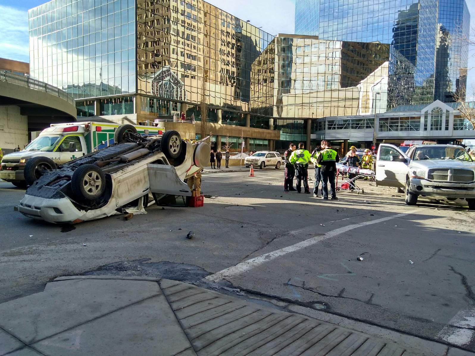 “The force of the collision caused the Toyota RAV4 to flip onto its roof,” Calgary police said in a release.