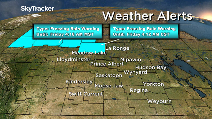 Environment Canada has issued a freezing rain warning for parts of northwest Saskatchewan.