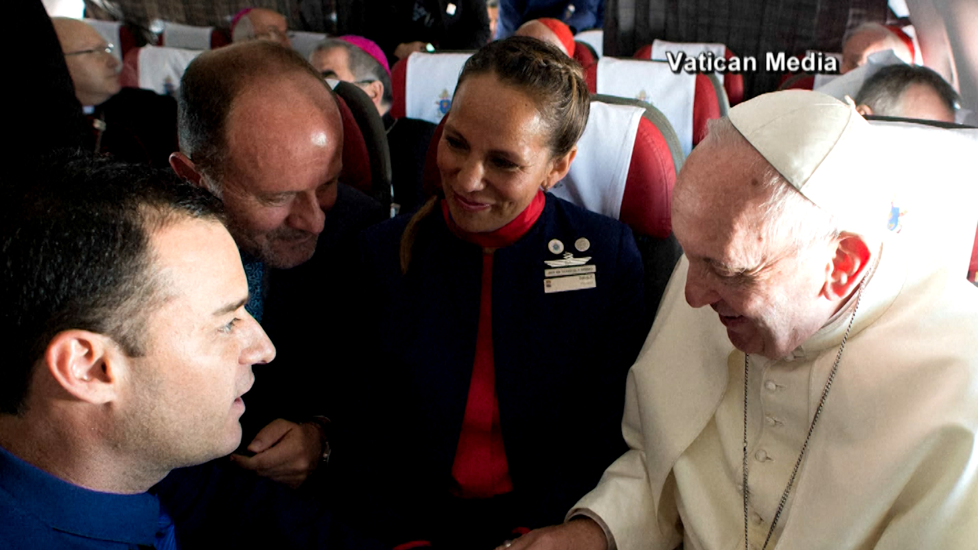 The Pope performed the brief ceremony in the front of the plane. Ignacio Cueto, president of Latam airlines, who was on board, was the witness.