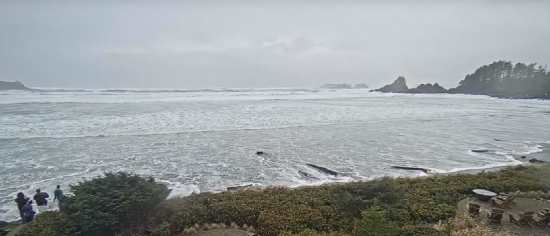 High waves were witnessed at Cox Bay in Tofino, where the water reached such levels it essentially covered the beach.