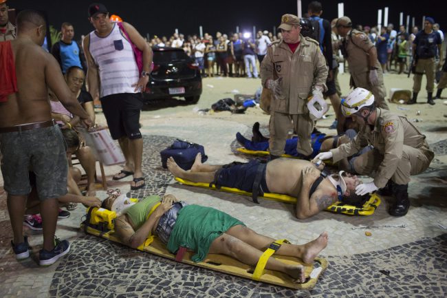 RIO DE JANEIRO – A car has driven onto the crowded seaside boardwalk along Copacabana Beach in Rio de Janeiro, and Brazilian authorities say at least 11 people have been injured.