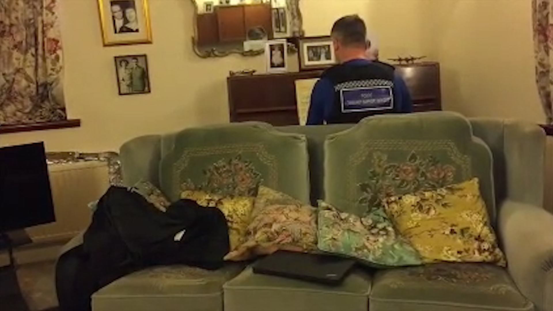Video released by a British police department showed a piano-playing cop helping raise the spirits of a Second World War veteran who recently had his home burglarized.