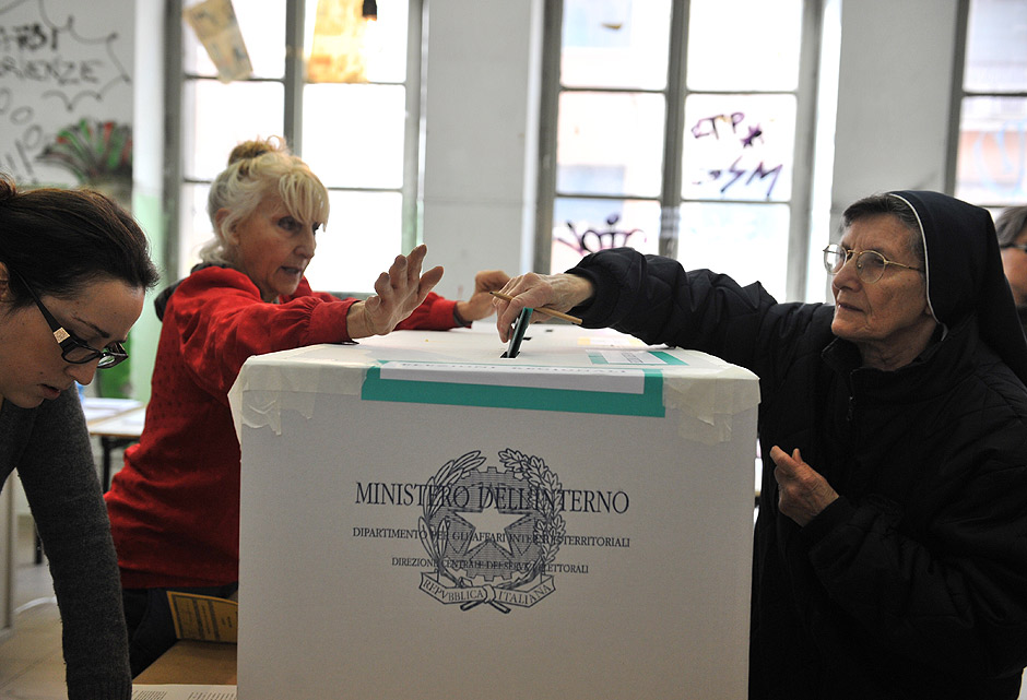 Italians began voting for a second day Monday in a national election that will determine if they are prepared to stay the course of painful economic reform or send a message of discontinuity to the political class that led the country to the brink of disaster by rallying around a protest party.