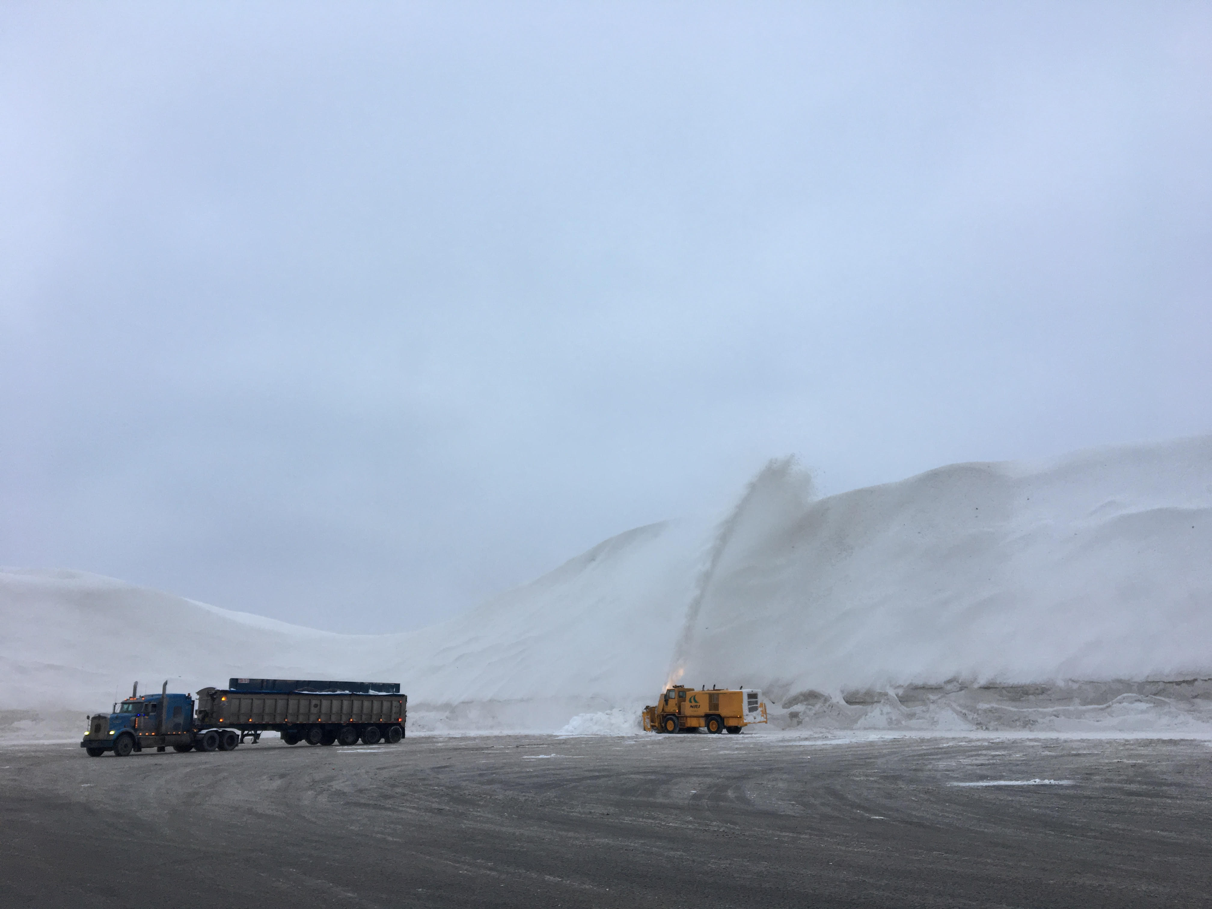 Heavy duty snow blowers send snow high into the air to the top of the pile, 24 hours per day. If they don’t maximize the space, the dump will be full in no time.