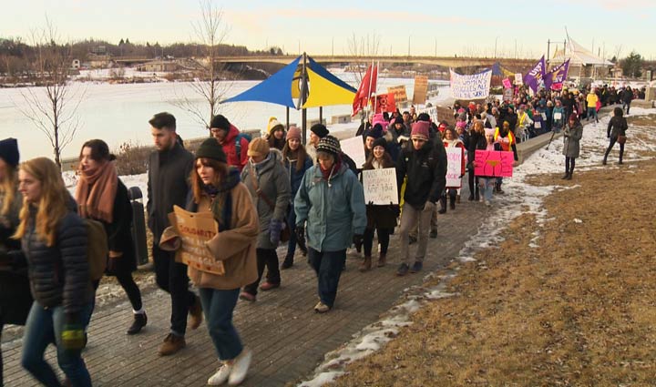 “This year the momentum continues,” Saskatoon march organizer Julia Price said. “We don’t live in isolation of any issue. Women’s issues are human rights issues and human rights issues are women’s rights issues.”