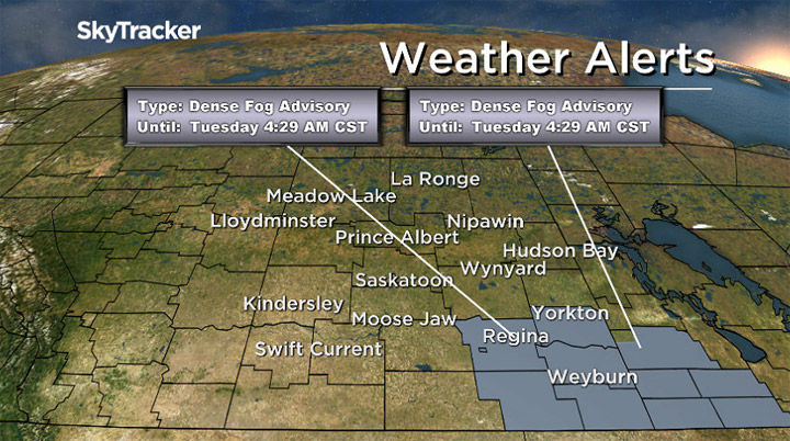 Foggy conditions are expected to lift later in the morning as a low pressure system moves into the province and begins to break up the stagnant flow over Saskatchewan.