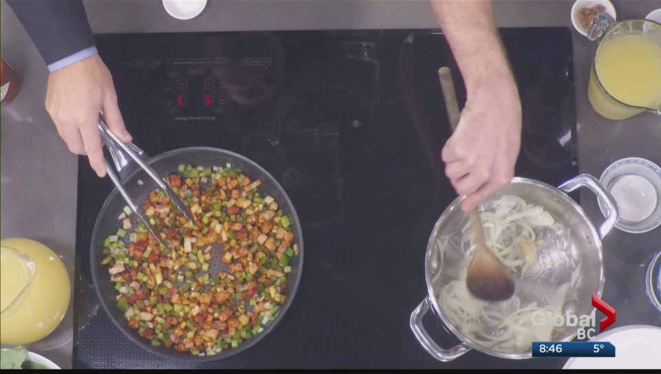 In a medium pot, heat Canola oil over medium heat. Add onions and cook for two minutes while stirring. Add garlic and cook for one minute more, while stirring. Do not brown onions or garlic.