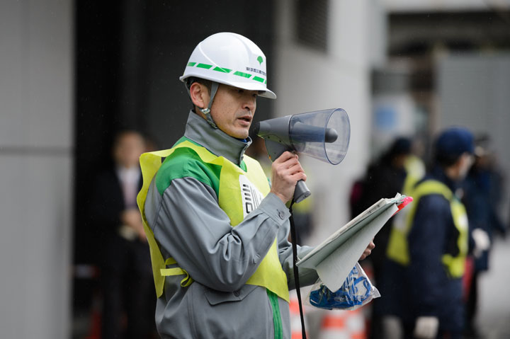 The choreographed evacuations at a fair ground and park ringing the Tokyo Dome baseball stadium involved around 300 volunteers.