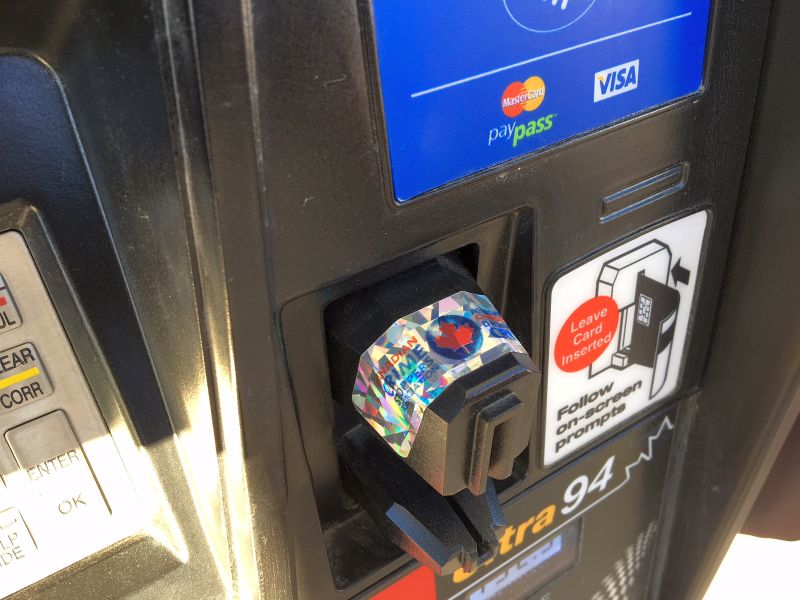 Silver holographic decals aimed at protecting consumers from fraud can now be seen at gas stations throughout Calgary.