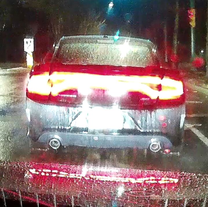 Police say the dashcam video shows the suspect vehicle but it is not yet possible to make out a licence plate.