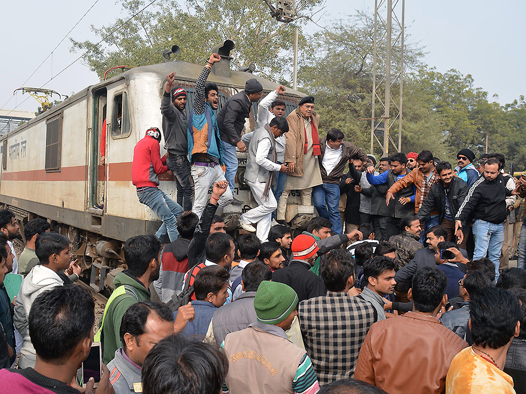 The protesters carried sticks and caused minor injuries to 14 people, said B.S. Sandhu, a senior police official, adding that police had detained 15 protesters.