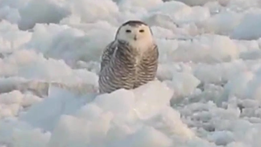 A New York nature enthusiast captured stunning video of a snowy owl resting on a chunk of ice on Lake Ontario over the weekend.