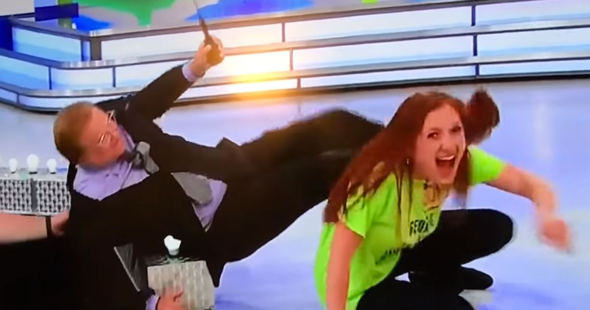 Carey was near the edge of the stage, and he nearly fell off. A member of the audience can be seen getting prepared to catch the game show host.