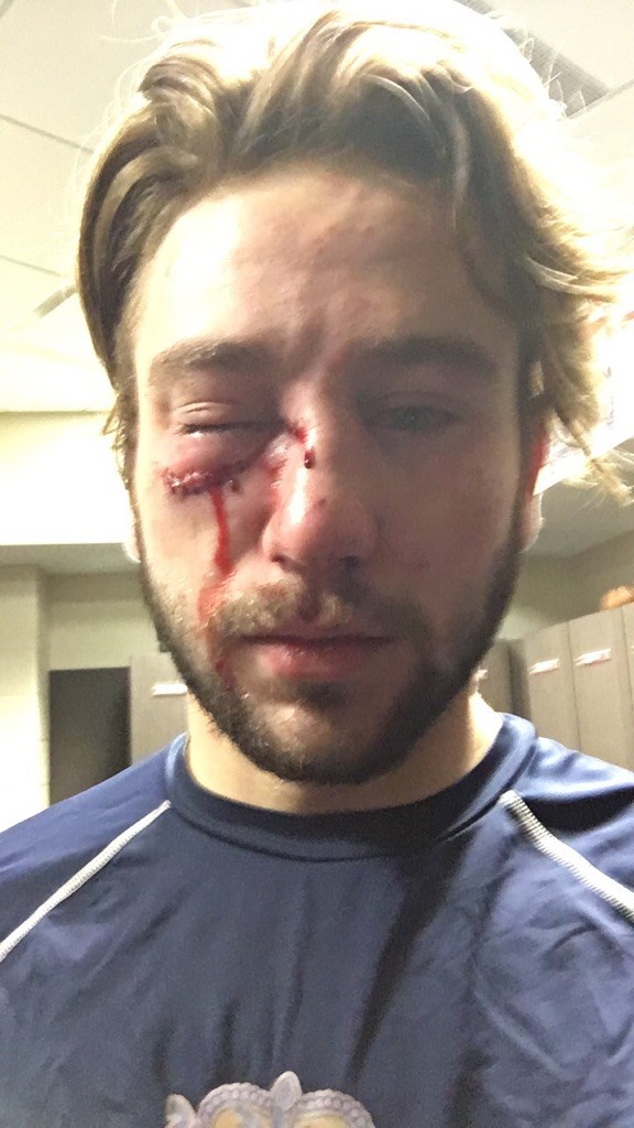 The puck, coming off his teammate’s stick, broke Mohr’s nose, orbital bone and tear duct in his left eye.