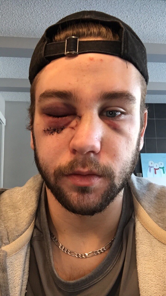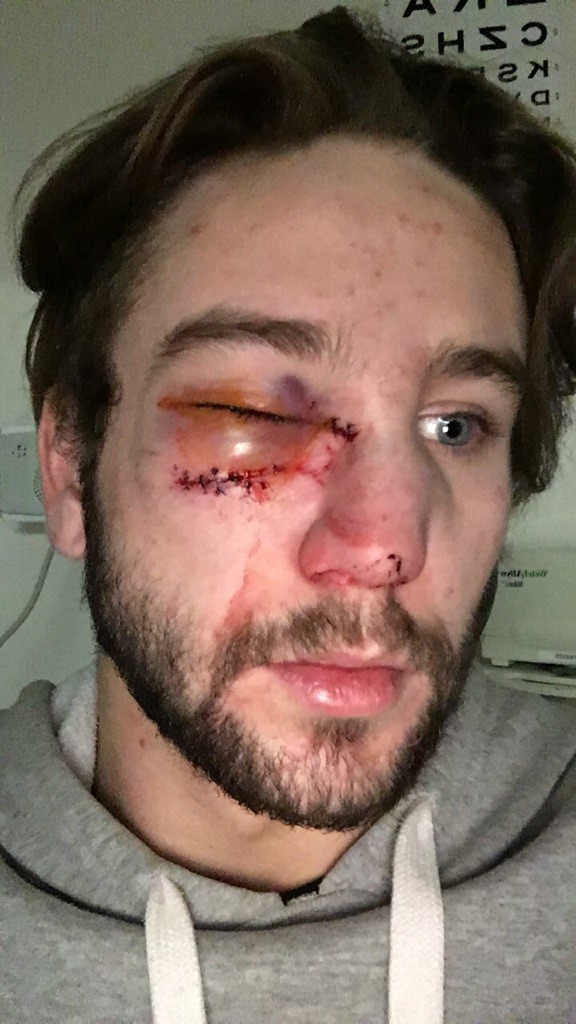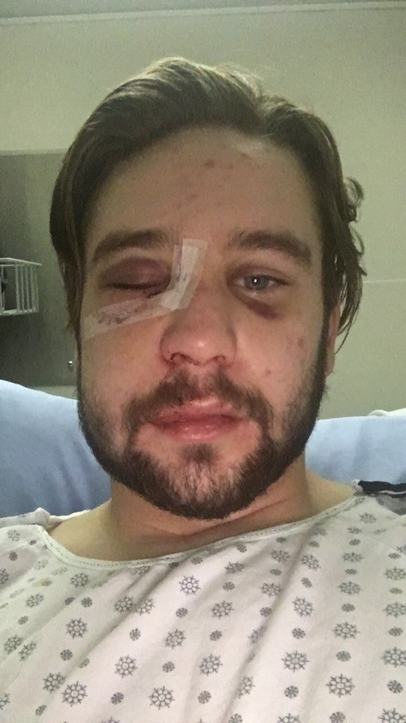 A week-and-a-half later, a plastic surgeon put plates in his cheek, nose and eye to repair the damage.